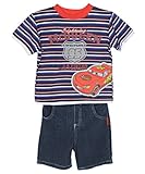 Disney , Bring out his competitive spirit with this set from Disney! The T-shirt sports a contrast collar, "Team 95" shield graphic, Lightning McQueen applique, stripe print, tagless collar interior, and mock trim at the sleeves and hem. The denim shorts have an elastic waistband and "95" logo button. Vroom! T-Shirt: 60% Cotton, 40% Polyester Shorts: 100% Cotton Machine Wash Cold Made in China ...